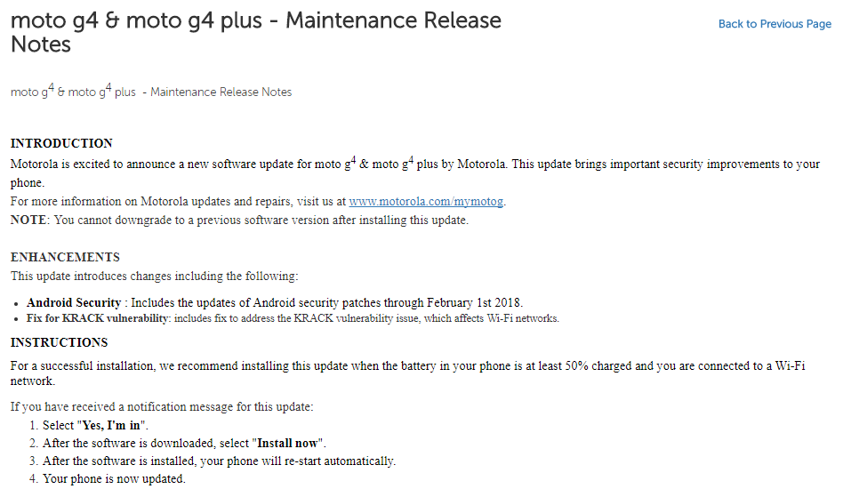 Motorola Posts February 2018 Security Patch Release Notes For The Moto G4 Plus